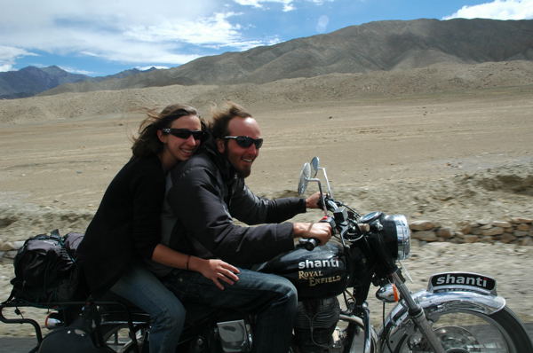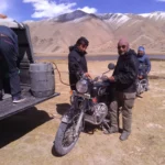 2008 : Gaetan et Sonia s’installe en Inde, à Manali. Sonia accompagne les treks et Gaetan emmène les motards sur les routes de l’Himalaya. Fin de saison, le projet Himalayan Bikers se précise entre Namgyal et Gaetan, une poignée de mains cèlent leur accord et ils achètent ensemble 10 nouvelles Royal Enfield Bullet 500, une première au Ladakh.