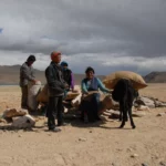 Batteries rechargées après cette courte pause, nous remontons l’Indus sur environs 160km jusqu’au check post de Mahé bridge. De l’autre côté du pont, nous entrons dans le territoire des nomades Changpa, les premiers habitants du Ladakh. Nous bifurquons au travers des montagnes par une petite route en direction du col de Namshang La (4800 m alt.). Des tentes en poils de yak se dessinent à l’horizon et nous observons au passage les nombreuses marmottes, yaks, dzo, chèvres pashminas, renards, ânes et chevaux sauvages. Ensuite, la route qui mène à un premier lac turquoise, le Tso Kiagar, se transforme à nouveau en piste caillouteuse jusqu’au lac Tsomoriri (18km de long). Logement en camp fixe (4540m d’alt.).