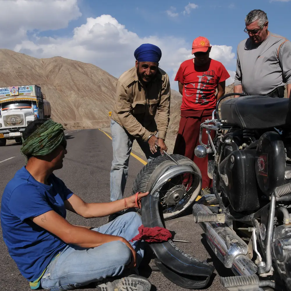 2009 : A partir de Zéro, il faut tout créer ! Gaetan et Sonia fondent l’agence de voyage Himalayan Bikers à Manali, Gyaltsan est le partenaire WEA au Ladakh, Thinley et Tashi deviennent les chauffeurs des véhicules assistances, Raja, nous rejoint et sera le mécano. S’ajoutera occasionnellement, Robin, guide culturel indien, Frank, pour l’assistance médicale, Dominique pour le guidage moto et les conseilles.