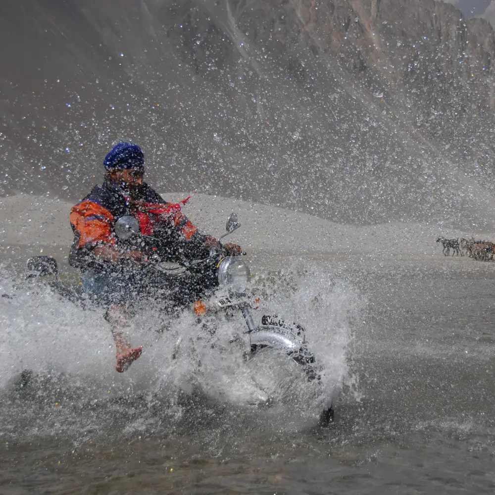 2025 : Le premier groupe part pour le road trip « Du Zanskar au Spiti, l’épopée himalayenne ». Nous lançons également l’Himalayan 450, qui révolutionne quelque peu les voyages à moto au Ladakh. Il est bien loin le temps où l’on croisait des aventuriers sur de vieilles Bullet, arrivant tout droit de Manali, Delhi ou Goa ; les bidons d’essence accrochés à l’arrière et le casque suspendu au porte-bagages.