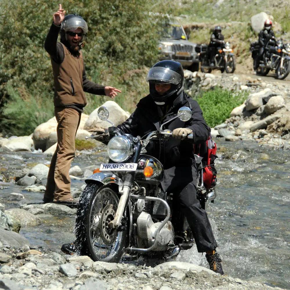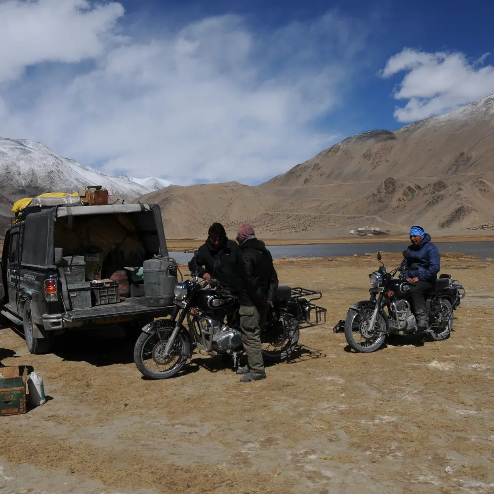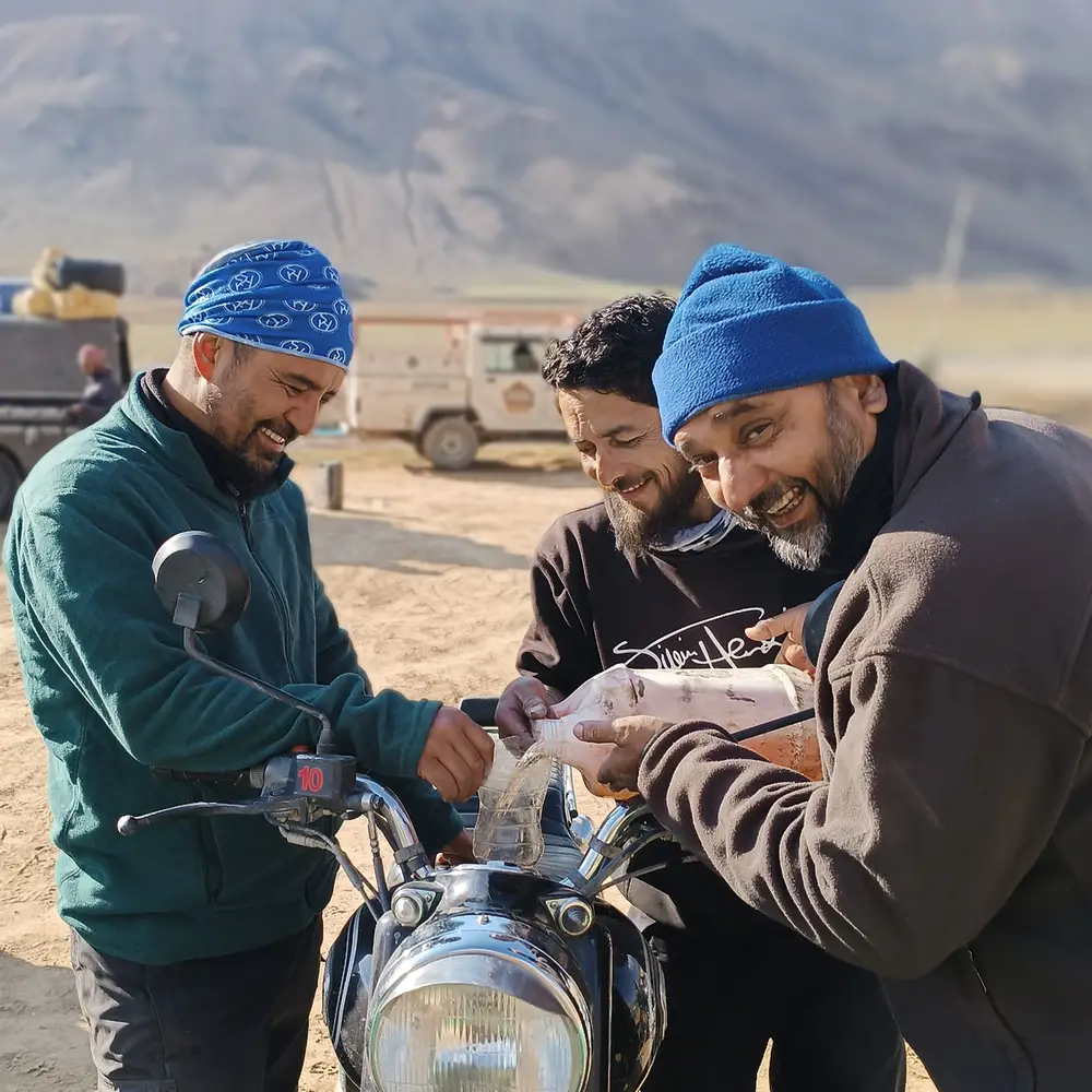 2024 : Toute l’équipe se retrouve au Kerala pour un voyage inoubliable avec le groupe de Sam et Nad, qui sont venus l’été précédent au Ladakh. En juin, nous lançons un road trip pilote avec les Kiki Riders : “Du Ladakh-Zanskar au Spiti”, un périple de 2700 km en 15 jours. Zanskar, Changtang, Transhimalayenne, Spiti, Manali… un parcours rude, intense et complet ! Nous proposons également l’Himalayan 410 en réponse à la demande de certains motards, même si nous restons convaincus de la polyvalence de la Bullet 500.