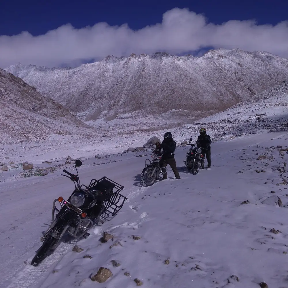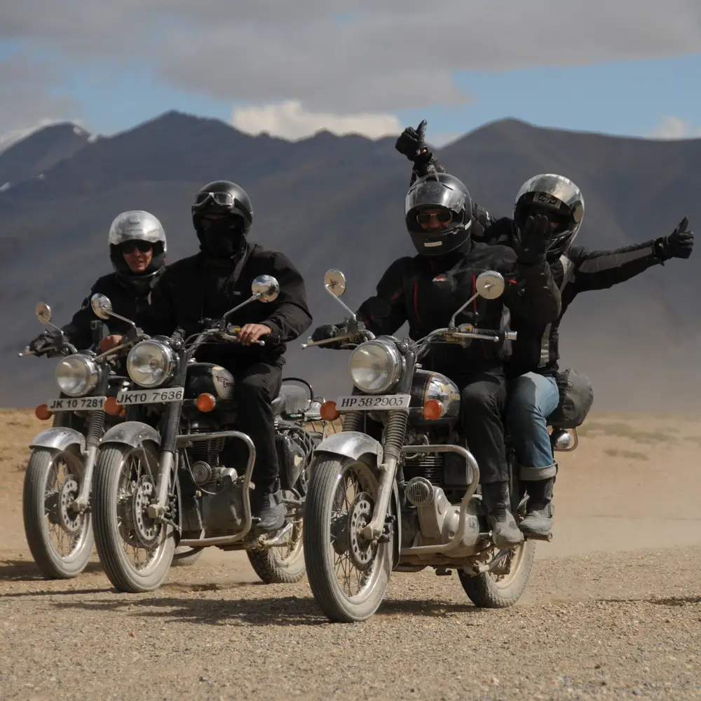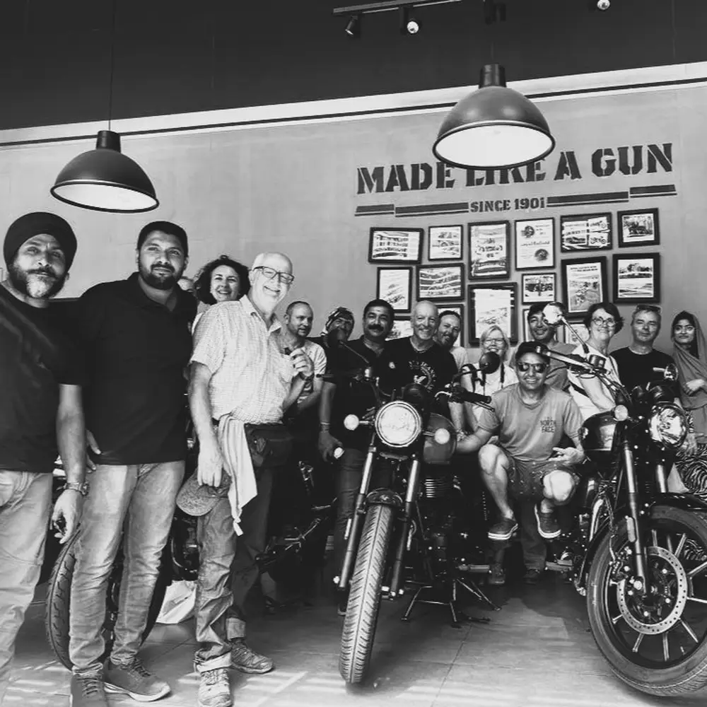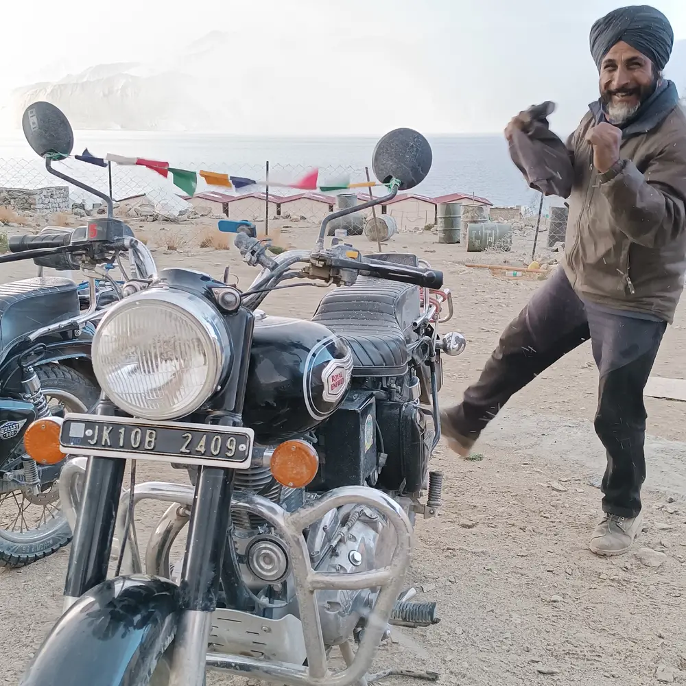 2024 : Toute l’équipe se retrouve au Kerala pour un voyage inoubliable avec le groupe de Sam et Nad, qui sont venus l’été précédent au Ladakh. En juin, nous lançons un road trip pilote avec les Kiki Riders : “Du Ladakh-Zanskar au Spiti”, un périple de 2700 km en 15 jours. Zanskar, Changtang, Transhimalayenne, Spiti, Manali… un parcours rude, intense et complet ! Nous proposons également l’Himalayan 410 en réponse à la demande de certains motards, même si nous restons convaincus de la polyvalence de la Bullet 500.